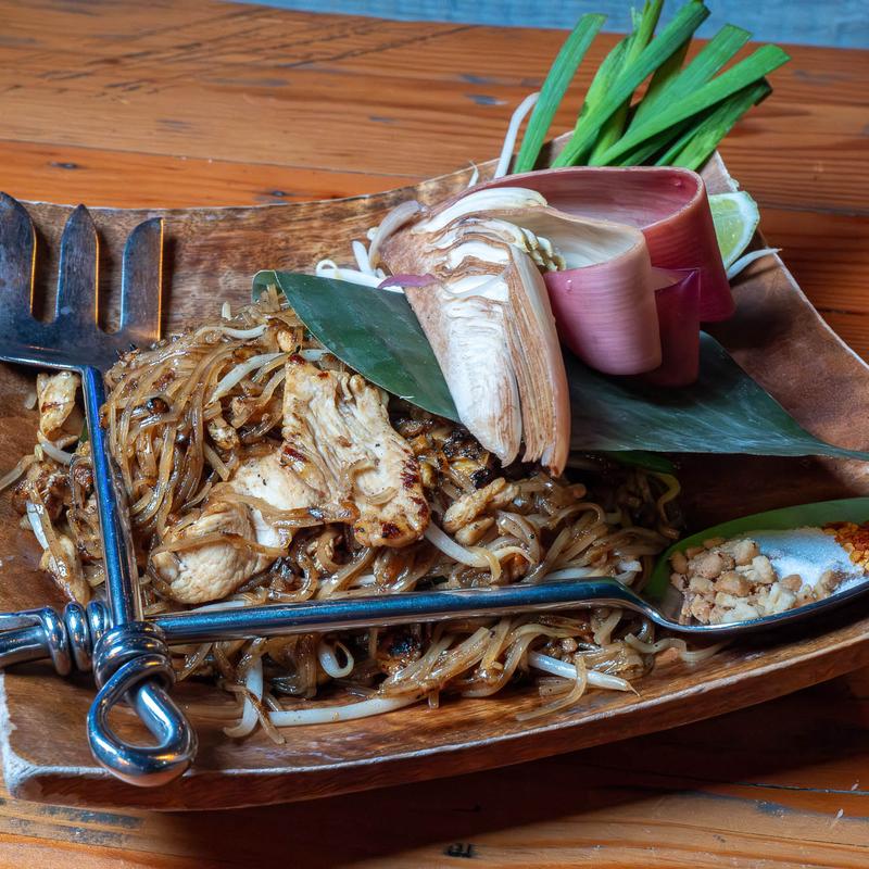 Traditional Thai-style stir-fried rice noodle and egg served with banana blossom and ground peanuts • Choice of Chicken, Pork, Beef, or Tofu • Add Prawns +$4.00 | Add Seafood +$5.00
