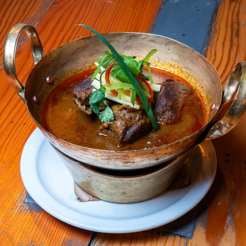 Boneless beef short ribs stewed in Hang Le curry sauce.